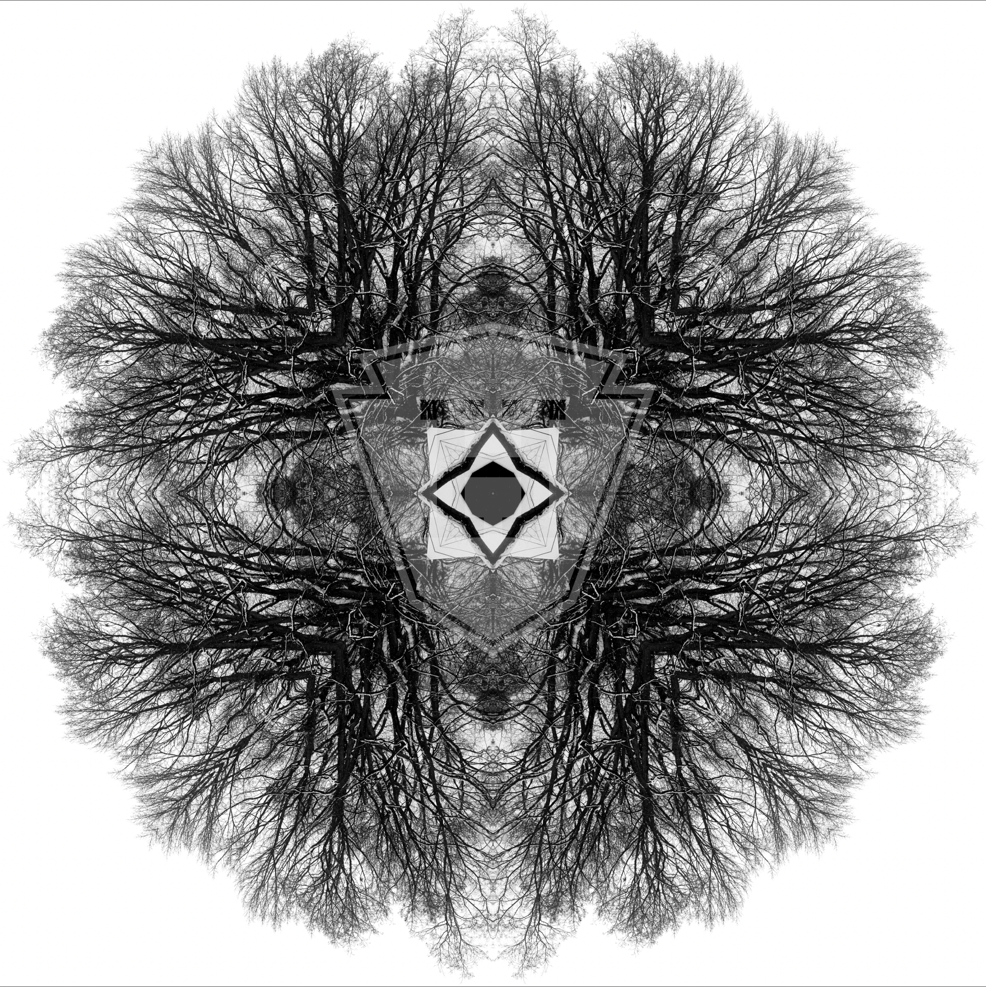 Digital photographic manipulation of an oak tree near my house 12x12" glossy.
